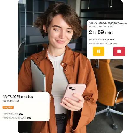 - Controla tus horas diarias y semanales al instante.